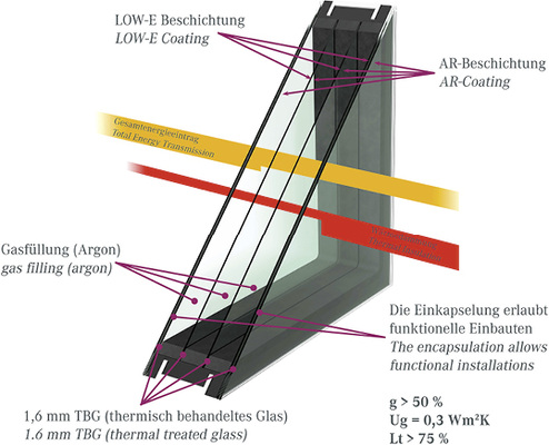 MEM4WIN ist ein von der EU gefördertes Projekt zur Entwicklung des Fensters der Zukunft. Die Ziele sind dabei hoch gesteckt: Das Gewicht der Fenstereinheit soll durch den Einsatz von thermisch vorgespanntem Dünnglas um die Hälfte reduziert werden. Außerdem soll es Energie liefern, die Wärmedämmung der 4-fach-Isoliergläser soll einen U g -Wert von 0,3 W/m 2K erzielen. Und obwohl die verwendeten Gläser dünner sind als Standardfloatglas, soll die Lärmdämpfung um rund 50 % verbessert werden.