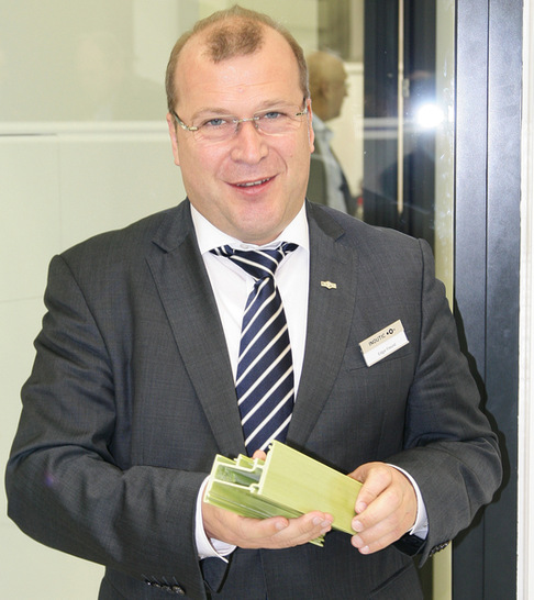 Innergy bringe auch in der Verarbeitung enorme Vorteile mit sich: Das aufwendige Verschweißen und Verputzen der Ecken entfällt. Inoutic-Geschäftsführer Edgar Freund erläutert gegenüber GLASWELT-Redakteur Daniel Mund, dass die Eckverbindungen bei diesem Material geklebt werden können. Auch andere maschinelle Bearbeitungsmöglichkeiten seien bemerkenswert gut. Einziger Wermutstropfen: Aufgrund des Pultrusions-Verfahren und der Materialkombination seien Profilgeometrien mit filigranen Innenkammern nicht realisierbar.