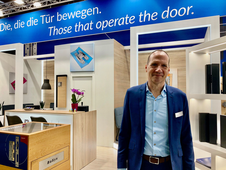 Das neue Objektband, das Albert Bartels auf der Messe präsentierte, kann nicht nur Türgewichte bis zu 300 kg stemmen, sondern es ist auch optisch sehr ansprechend: Das Rollenbandsystem ist mit einem Durchmesser von nur 20 mm statt der üblichen 22 mm besonders filigran, so dass man dem Band das Gewicht der Tür nicht ansieht und im Objekt mit unterschiedlichen Türgewichten mit einheitlichem Rollendurchmesser arbeiten kann. Überhaupt spielt Design bei den Neuentwicklungen der Bartels Systembeschläge GmbH eine wichtige Rolle.