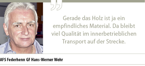 Wehr – Dort ist es teilweise noch schlimmer. Vorne steht ein tolles Bearbeitungszentrum und im weiteren Verlauf der Linie fehlen dann die Rollwagen. Gerade das Holz ist ja ein empfindliches Material. Da bleibt viel Qualität im innerbetrieblichen Transport auf der Strecke.