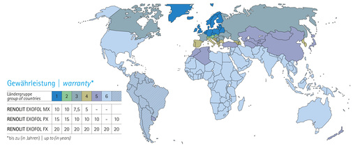 „Um diesen entscheidenden Risikofaktor kalkulierbar zu machen, haben wir die Weltkarte in verschiedene Ländergruppen unterteilt“, beschreibt Stefan Friedrich, Leiter des Geschäftsbereiches Renolit Exterior, die Grundlagenarbeit.