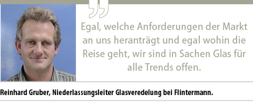 „Egal welche Anforderungen der Markt an uns heranträgt und egal wohin die Reise geht“, unterstreicht Niederlassungsleiter Reinhard Gruber, „wir sind in Sachen Glas für alle Trends offen und sehen uns bestens für die Zukunft gerüstet.“—
