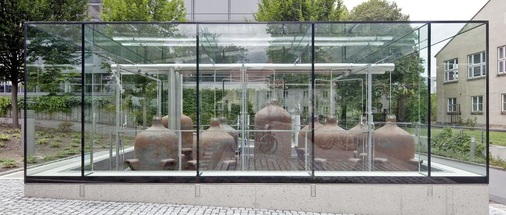 Bauherr: Leibniz-Institut für Festkörper- und Werkstoffforschung Dresden; Architekt: Blum und Schultze Architekten, Dresden; Tragwerk: GSK - Glas Statik Konstruktion, Dresden (Planung), Glasbau Gipser, Halle (Umsetzung); Klebstoff: Delo Industrie Klebstoffe, Windach; Glasveredelung: Thiele Glas, Wermsdorf.