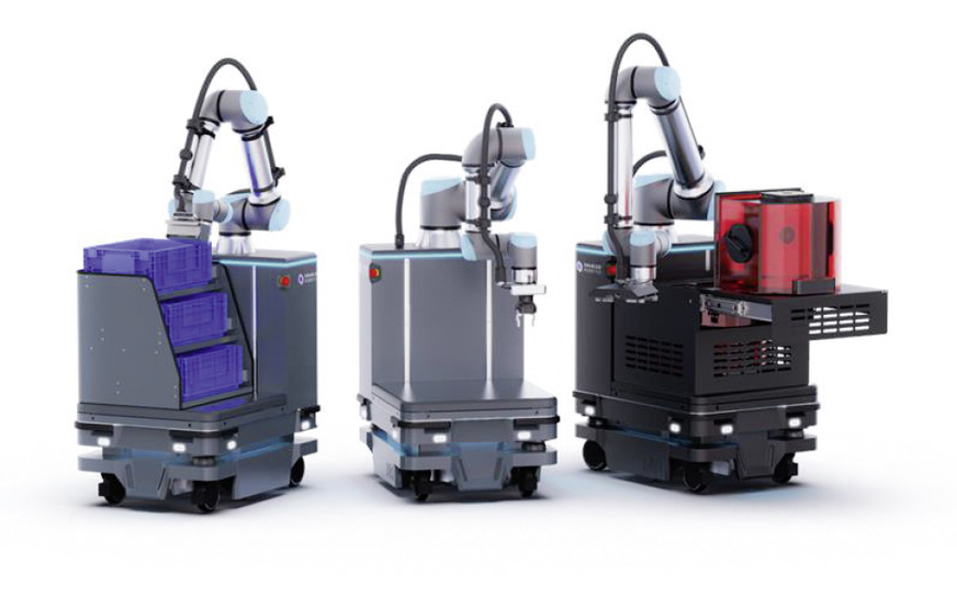 Mobile Industrial Robots (MiR) entwickelt und vertreibt autonome mobile Roboter (AMR) für interne Logistik-Prozesse. Dazu zählen auch bewegliche/fahrende Mobile Cobots, die gemeinsam mit Universal Robot entwickelt wurden. Die gemeinsame Lösungen sind für eine Vielzahl an Anwendungen von der Maschinenbeschickung bis hin zu Transportaufgaben einsetzbar.