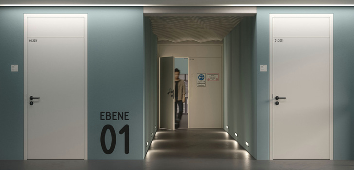 Die Beschlagelemente, mit denen sich die Blende millimetergenau an Türblatt und Zarge ausrichten lässt, spielen darum eine wesentliche Rolle. Basys hat entsprechende Systeme im Programm.