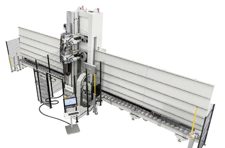 Erhältlich sind drei Standardgrößenfür die Bearbeitung von Gläsern bis zu 6000 × 3300 mm (weitere Größen auf Anfrage). Die Ypsos kann dabei als Stand-alone-Maschine, in Linie mit einer Bohr-Fräsmaschine eingesetzt werden sowie in einer ISO-Linie. Nach Auskunft der Entwickler ist sie zudem einfach zu bedienen: Das Glas wird lediglich auf die Glaszuführung gestellt, die Anlage greift die Scheibe und startet die Bearbeitung.