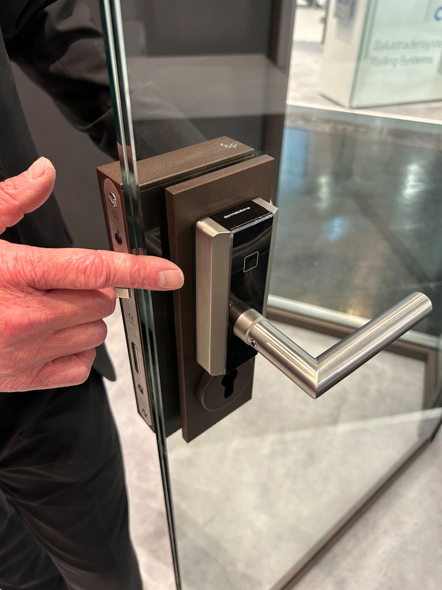 Weiter waren unterschiedliche Varianten von Zutritts-Kontrollen zu sehen, die sich mit den Schloss-Drücker-Systemen von Dorma-Glas kombinieren lassen.