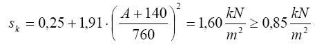Lastannahmen: Bei einem Einbauort in Schneelastzone 2 auf 500 müNN ergibt sich ein charakteristischer Wert der Schneelast auf dem Boden von: