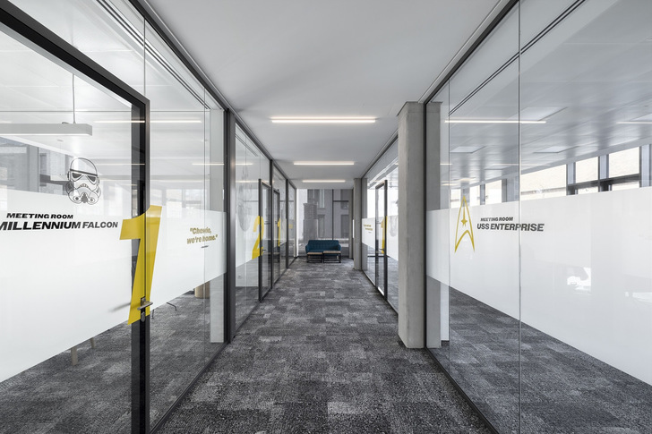 Alle Besprechungsräume sind nach Raumschiffen aus diversen Science-Fiction-Filmen benannt, unter anderem „Enterprise“ und „Millennium Falcon“ sowie mit entsprechenden Grafiken und passenden Zitaten gestaltet.