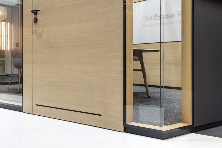 Das beidseitig flächenbündige Türelement fecotür Air ist mit allen feco-Systemwänden kombinierbar und kann auf Wunsch auch in bauseitige Wände integriert werden.