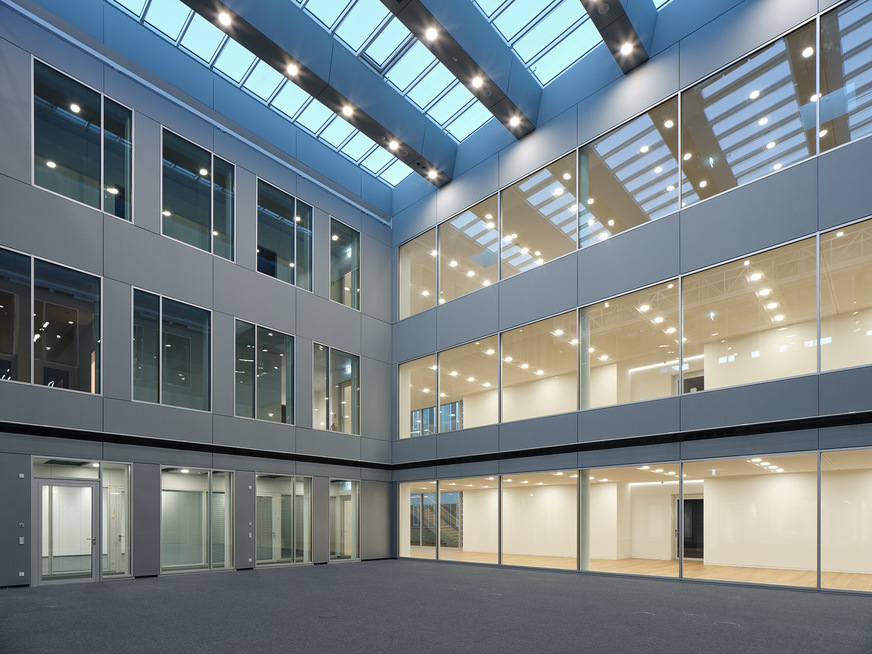 In der Eingangshalle und im Newsroom wurden die Teilfassaden zu angrenzenden Besprechungs- und Büroräumen in Brandschutzsystemen Schüco FW50BS errichtet. Gemäß Brandschutzanforderung waren hier Brandschutzgläser der Feuerwiderstandsklasse EI(F) 30 gefordert, die neben ihrem Schutz vor Feuer und Rauch auch für 30 Minuten thermisch isolieren, also im Brandfall zusätzlich ein Schutzschild gegen die Übertragung von Hitzestrahlung auf die feuerabgewandte Seite der Verglasung bieten.