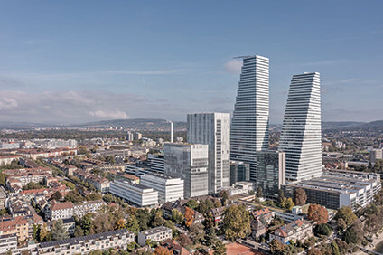In Basel konzentriert Roche die Pharmaforschung im pRED Innovation Center, das im September 2024 eröffnet wurde. Die beiden bis zu 114 m hohen Laborgebäude besitzen eine Closed Cavity Fassade (CCF) von Gartner. Für das pRED entwarfen die Basler Architekten Herzog & de Meuron vier unabhängige Einzelbauten, die in aufsteigender Höhe gestuft sind: ein 18 m hohes Kongresszentrum und ein 26 m hohes Bürogebäude mit Fensterbändern in Holzbauweise und weißen Brüstungsbändern sowie zwei Laborhochhäuser. Zwei gläserne Brücken verbinden die Laborhochhäuser im 6. und 13. OG.