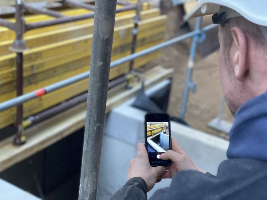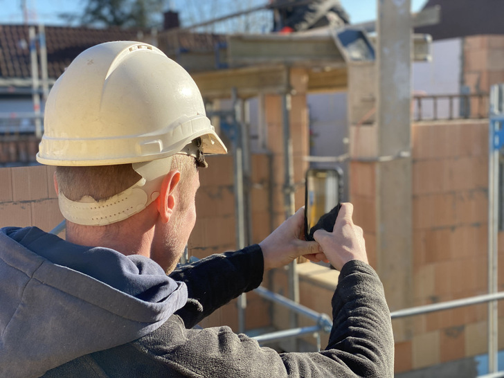 Automatisierte Foto-Übertragung und -Ablage mit nur einem Klick: Durch die Nutzung der Foto-Fertig-App können Handwerker in der täglichen Baustellendokumentation ganz einfach Fotos erfassen, die dann sofort verschlüsselt an das eigene Firmensystem übermittelt werden.