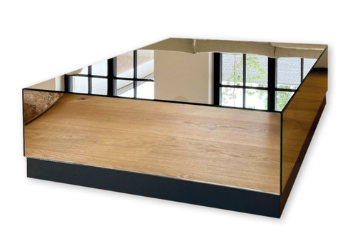 Barbara Bosse und ihre Schwester Veronika Natter-Rauch haben vor kurzem das Startup #Sand.Soda.Lime gegründet und bieten damit Interieurprodukte aus Glas und Spiegel an, wie den Premium Mirror Table (100 × 100 cm) und rechts den Black Lacquered Coffee Table (60 × 60 cm). Die stabilen Tische sind ein echter Blickfang. barbara.natter@glas-natter.de