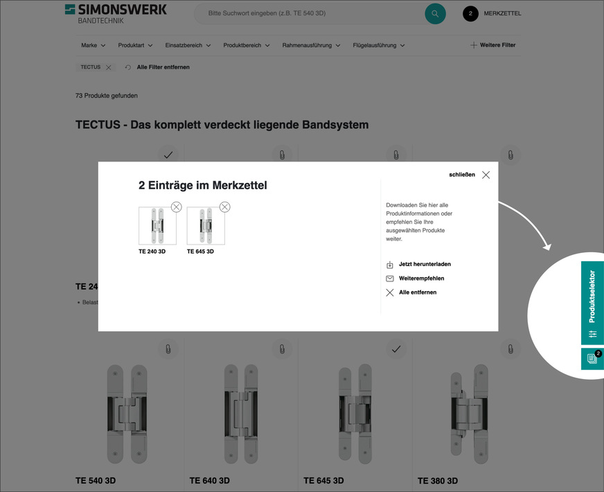 Das neue Design des Simonswerk Produktselektors mit größeren Bildern und größerer Schrift erleichtert die visuelle Orientierung und verschafft der detaillierten Technik der Bandsysteme mehr Aufmerksamkeit. Auch technisch und in der Benutzerfreundlichkeit verfügt die neue Version über attraktive Neuerungen.