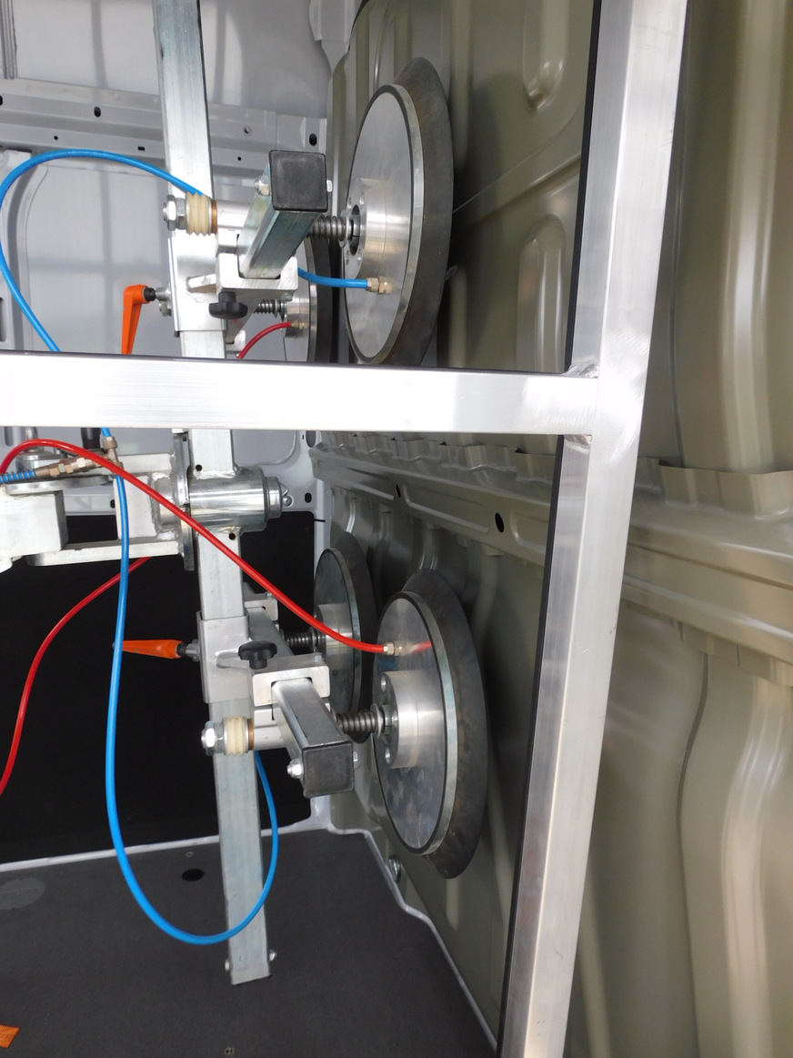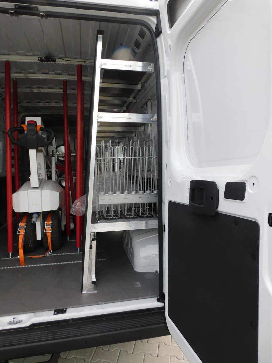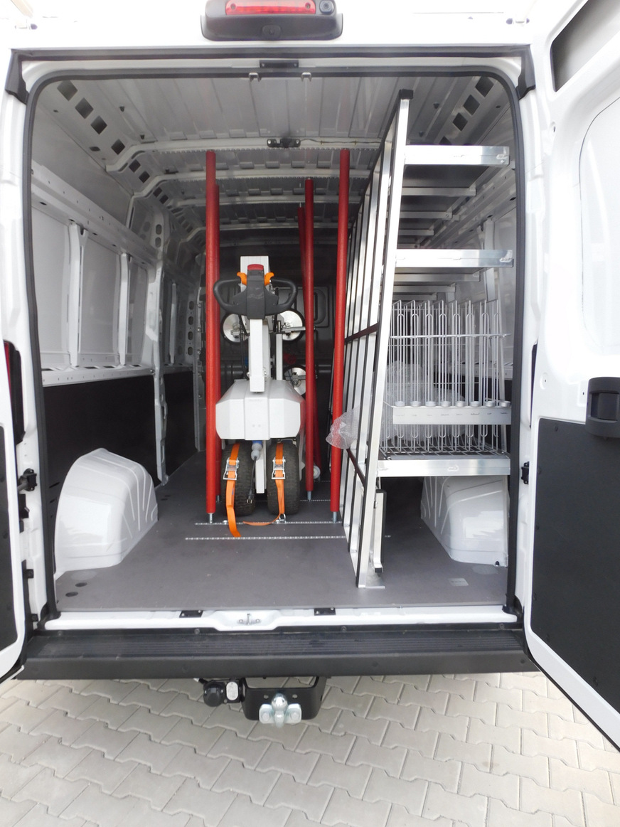 Ein wesentlicher Aspekt beim Einsatz mobiler Hebegeräte ist deren Transport zur Baustelle. Hier hat der Hegla Fahrzeugbau aus Satteldorf eine neue, maschgeschneiderte Lösung für das Team von Sascha Jansen entwickelt: Die Integration des Robby in Transporter der Sprinterklasse. Das System fixiert das Hebegerät sicher im Innenraum.