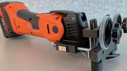 Der erste Schritt ist das Handgerät IGD-A Manual (handheld). Die Klinge und auch der Führungsaufsatz sind kompatibel mit dem handelsüblichen Oszillationsschneider. Das speziell entwickelte Messer ermöglicht ein einfaches Eindringen und Auftrennen von Glas und Abstandhalter, ohne Material von der Glaskante, wie z. B. Splitter, in den Trennspalt zu bringen.