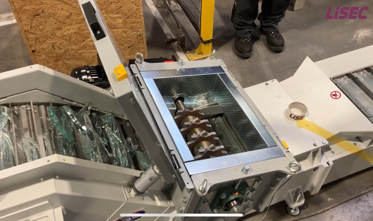 Die GSA-CF dient der Zerkleinerung von Glasresten. Die zentrale Zerkleinerungseinheit besteht aus einer langsam rotierenden Sternwalze, die eine geräuscharme und fast staubfreie Verarbeitung der Glasscherben ermöglicht, so Lisec.