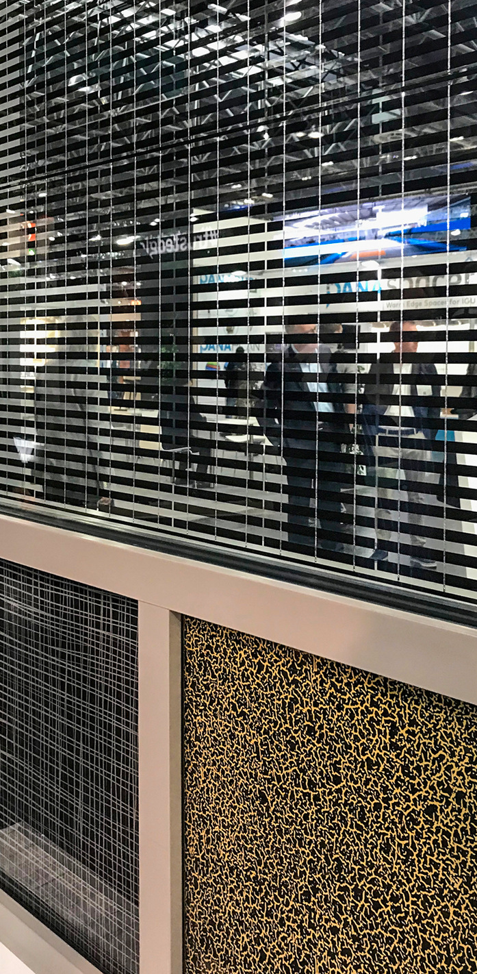 Saint-Gobain präsentierte eine Reihe neuer Gläser, u. a. die neue 4BIRD Vogelschutzglas-Serie, die vier geprüfte Vogelschutz-Designs umfasst. Diese können auf Gläsern ab 5 mm aufgebracht werden, auf Float, ESG oder VSG. Weiter war am Stand das kohlenstoffarme Glas Orae zu sehen mit einen geschätzten CO2-Fußabdruck von nur 7 kg CO2/m2 (bei 4 mm Dicke).