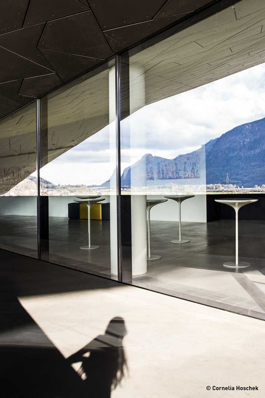 Egon Trinkl, Geschäftsführer der Schlosserei Egon Trinkl GmbH war für die Ausführung der Fenster, Türen und Fassaden zuständig. Er erinnert sich an die Besonderheiten bei der Realisierung eines solch ambitionierten Bauvorhabens: „Die Herausforderungen in diesem Bauvorhaben lagen in der Fassadengestaltung, bei der im Fußbodenbereich alles nach unten geht, im Deckenbereich alles nach oben geht, sie im spitzen Bereich eine Höhe von 11 m hat und darin Türen mit Vollverglasung eingebaut sind und die Fassade nach außen unten um 110 Grad wegknickt und im ersten Obergeschoss 30 Grad nach hinten knickt.“