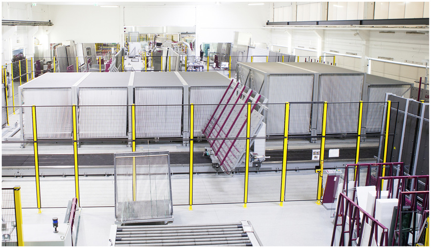 Ziegler – Der größte Vorteil für den laufenden Betrieb ist die vollautomatische Versorgung sämtlicher Maschinen mit Daten sowie das Routing der Scheiben durch die Sortierung. Die Bediener müssen so keine Daten mehr an den Maschinen eingeben und im Idealfall die Gläser zwischen Zuschnitt und ISO-Linie nicht mehr anfassen. Dadurch lassen sich die Bearbeitungszeiten auf den Maschinen auf die tatsächliche physikalische Taktzeit reduzieren und ein Durchsatz bei den Maschinen bei Losgröße 1 erreichen, der sonst nur bei Serienfertigung von lauter gleichen Scheiben möglich wäre.