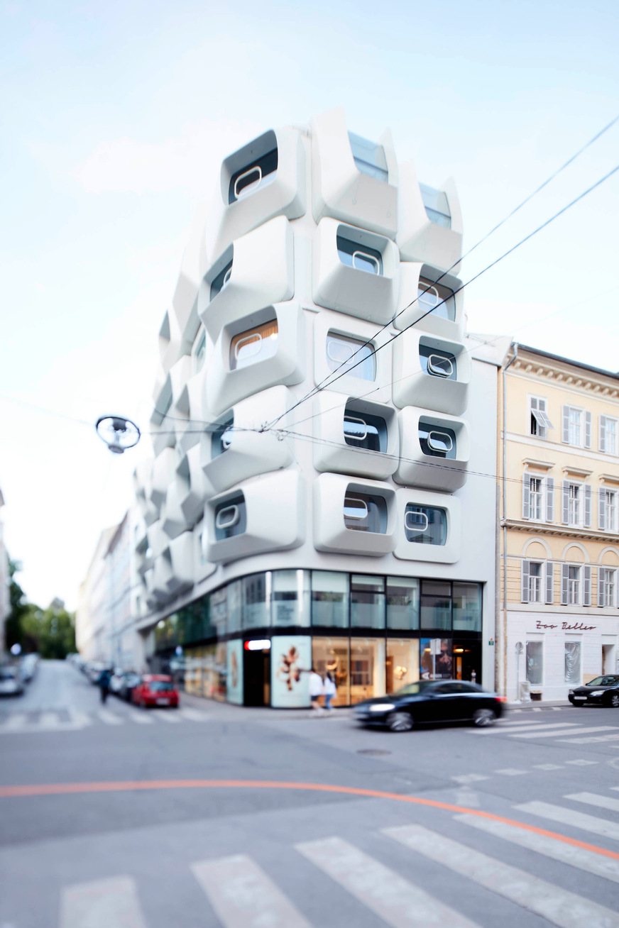 Das Design-Haus Argos in Graz bereichert die österreichische Stadt um ein architektonisches Highlight. Eine Vielzahl an Augen, die in alle Richtungen blicken, ähnlich wie die des Riesen Argos aus der griechischen Mythologie, prägen das Erscheinungsbild des Gebäudes in der historischen Innenstadt.