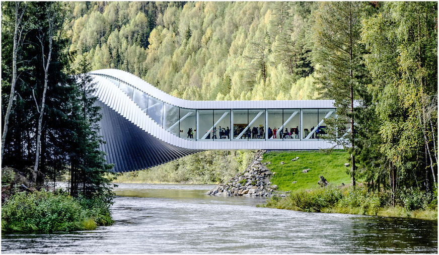 Das aufsehenerregende Bauprojekt nahe Oslo stammt aus der Feder des Büros BIG Bjarke Ingels Group. „The Twist“ steht inmitten der norwegischen Waldlandschaft und schließt den Rundweg durch den Skulpturenpark des Kistefos Kunstmuseums oberhalb des Flusses Randselva ab.
