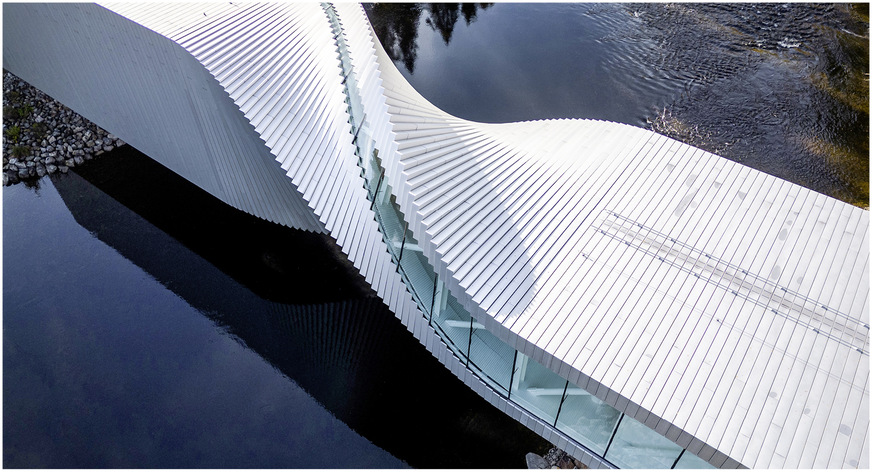 Das Bauwerk ist 60 m lang und wird von Aluminium und Glas eingehüllt. Die spektakuläre 90-Grad-Drehung des Gebäudes, inklusive der Fassade und den Fassadengläser, verwandelt den Galeriebau selbst in eine Skulptur.