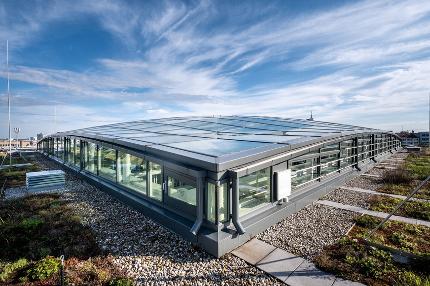 Da die gesamte Konstruktion thermisch getrennt ist, wird das Glasdach zum aktiven Energiemanager des Gebäudes: Im Sommer bleibt die Wärme draußen, im Winter drinnen. Um eine besonders hohe Langlebigkeit der Verglasung zu erreichen, muss der Falzgrund sowohl in den Pfosten als auch in den Riegeln belüftet werden. Das erreicht Lamilux durch patentierte AVS-Technologie, die selbst in hochgedämmten Systemen die passive Falzgrundbelüftung gewährleistet.