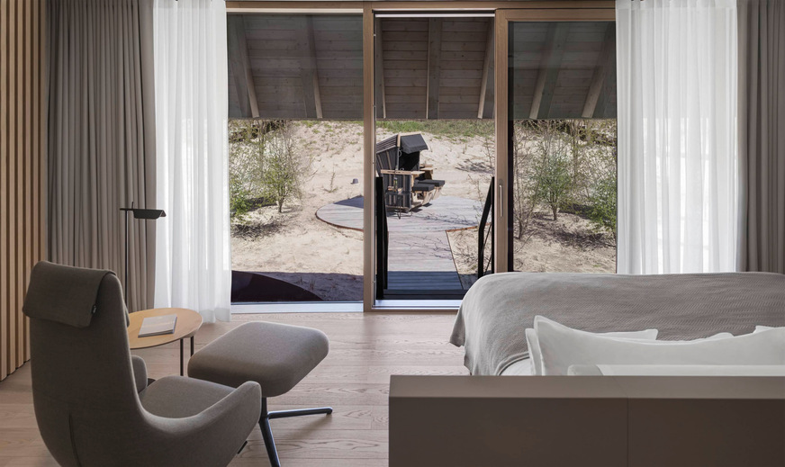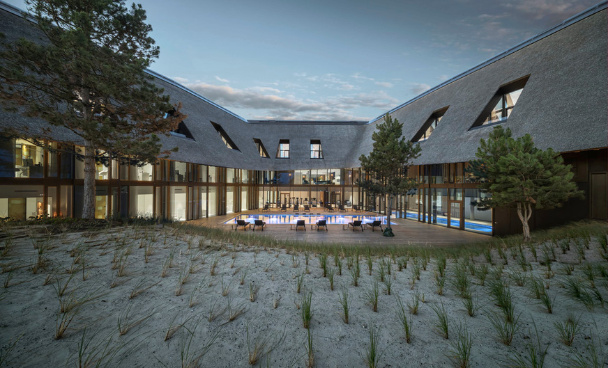 Das Bestandsgebäude mit überhängendem reetgedecktem Dach dient als Vorbild für die weiteren Gebäude des Ensembles. Zusammengenommen verfügt der Lanserhof Sylt mit 7100 m2 über das größte reetgedeckte Dach Europas.
