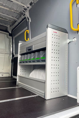 Die Ausstattung ist speziell auf die Anforderungen von Fensterbauern, Glasern sowie von Montage- und Handwerksbetrieben ausgelegt, effiziente Arbeitsabläufe, sichere Ladung und optimale Raumnutzung zu ermöglichen.