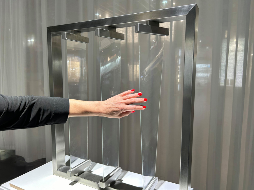 Interessant auch war auch ein neues Konzept für 3-fach-Isolierglas mit einem ultradünnem Mittelglas von 0,5 mm. Die bei Glaston vorgestellte Scheibe hat eine Gesamtdicke, die einem herkömmlichen 2-fach-ISO entspricht. Das ermöglicht es, alte ISO-Einheiten einfach gegen die neuen dünnen 3-fach-Gläser auszutauschen.