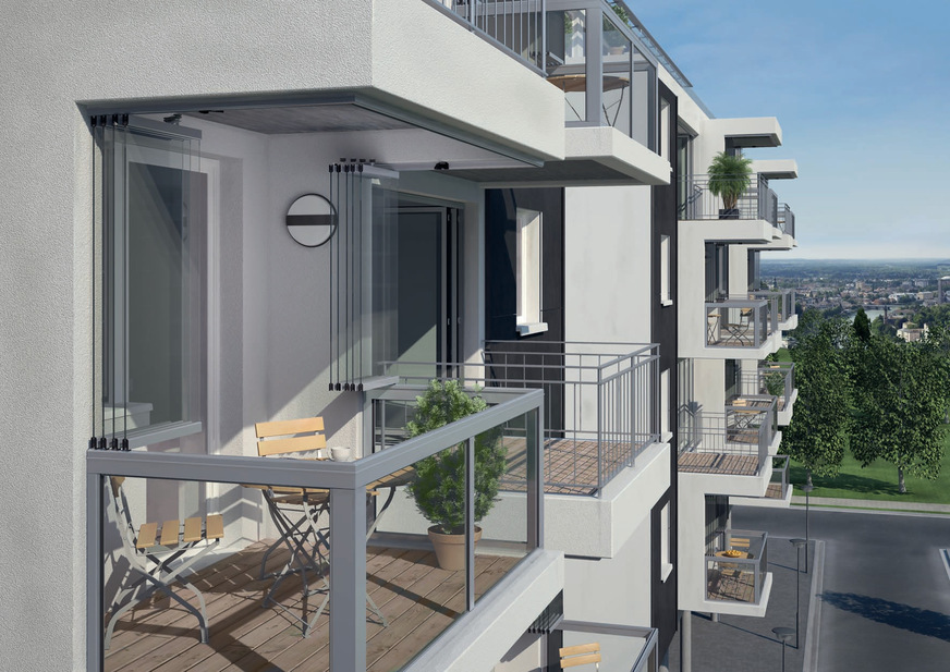 „Eine 24 mm breite Überdeckung der Flügelelemente und ein vertikaler Rahmen sorgen für zusätzlichen Schutz gegen Schlagregen und Wind“, erklärt Schneider. „Für mehr Ruhe und Gemütlichkeit auf dem Balkon erreicht eine Balkonverglasung mit dem SF25 sogar eine Luftschalldämmung bis Rw 34 dB, was Verkehrs- oder Baustellenlärm deutlich verringert.“