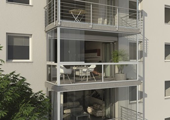 „Balkonverglasungen schützen das ganze Jahr über vor Regen, Wind, Kälte und Schnee“, so Dennis Schneider, Geschäftsführer der Sunflex Aluminiumsysteme GmbH. „Hierbei können hängende Schiebe- und Schiebe-Dreh-Wände entweder auf einer bestehenden gemauerten Brüstung angebracht oder als ganzheitliche Verglasung mit dahinterliegender Reling-Brüstung gebaut werden.“