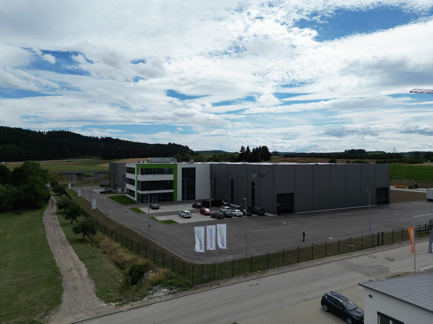 Dass beim Bau des neuen Firmengebäudes das Thema Nachhaltigkeit eine zentrale Rolle spielen soll, war von Anfang an klar. Es wurde im Standard EH 40 errichtet. Wärmepumpe und Sonnenschutzverglasung gehören zur energieeffizienten Ausstattung. Die Versorgung mit Strom, Wasser, Druckluft und Daten erfolgt über Schächte in der Bodenplatte. Auf diese Weise bleibt der Hallengrundriss flexibel bespielbar.