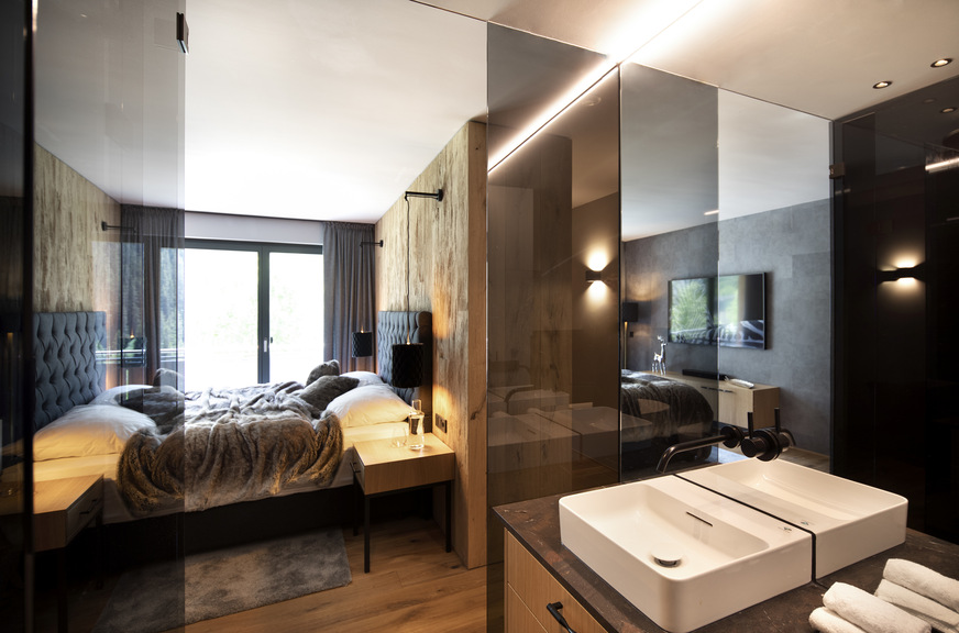 Die seit den 1960er-Jahren geltende Maxime „Qualität vor Quantität” des österreichischen Ferienortes Lech am Arlberg zeigt sich u.a. in der hohen Zahl an Fünf-Sterne-Unterkünften. Dazu zählt nun auch der Umbau einer Wohnung in ein Feriendomizil mit einem großen Wohn-Ess-Bereich, vier Schlafzimmern und drei Bädern, wo dunkle Saint-Gobain Designgläser vom Typ Parsol und edle Beschläge in den Bädern verbaut wurden.