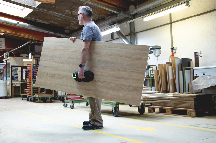 Und das Rumpfbeuge‑Exoskelett Mate UBA unterstützt den unteren Rücken bei Vorbeugen, wie es beim Handling von Glas und Fenstern üblich ist. Beide Systeme arbeiten ohne Energieversorgung.