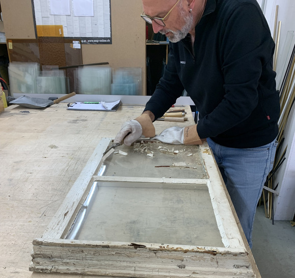 Die notwendige Expertise in Sachen Re-Use bringt Sollingglas ins Projekt ein, die eine Methode entwickelt haben, um die historischen Gläser zu bewerten, zerstörungsfrei aus den Profilen zu entnehmen und mit wärmedämmbeschichteten dünnen Gegenscheiben zu rund 10 Millimeter schlanken Isoliergläsern zu verarbeiten. Nach entsprechender Bearbeitung der Profile gelangen sie so ertüchtigt wieder in die originalen Fenster.