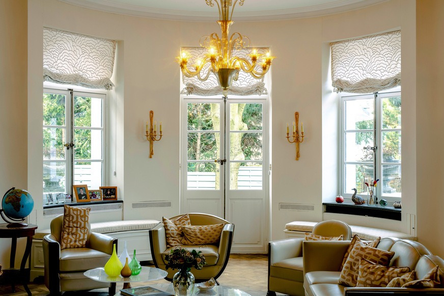 Das Modernisierungsobjekt in der Gemeinde Uccle im Süden Brüssels besitzt großflächigen Sprossenfenster die den Charakter der Villa prägen. Im Erdgeschoss beleben zweiflügelige Rundbogenfenster mit Achter-Sprossierung, horizontaler Kämpferteilung sowie Bogenfaschen die eher schlichte Fassade und im 1. OG zieren plastisch ausgeformte, dekorative Stuckumrandungen die rechteckigen Sprossenfenster.