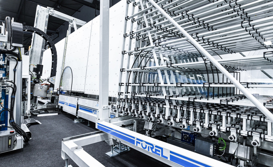 Weiter wird ein neues Sortiersystem für fertige Isolierglas-Einheiten. präsentiert, das sämtliche logistischen Abläufe nach der Produktion übernimmt. Es entlädt, transportiert und organisiert fertige Elemente vollautomatisch. Die intelligente Steuerung reduziert Transportzeiten, vereinfacht die interne Logistik und minimiert Risiken von Glasbruch. Zudem hat Forel seine Produktionskapazitäten um 9000 m2 erweitert.