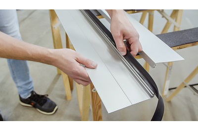 3) Mit einer einfachen Zug-Druck-Bewegung – basierend auf der Idee des Kabelbinderprinzips – die Glasscheiben im Profil sicher verankern.