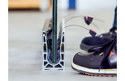 Sind die Scheiben zueinander ausgerichtet, kommen die Spannkeile zum Einsatz. Sie sind über ein Zugband miteinander verbunden und werden über dieses mit nur einem Handgriff im Glaslager verspannt. Auch hierbei ist kein Werkzeug erforderlich: Während der montageseitige Spannkeil einfach von Hand festgedrückt wird, zieht man gleichzeitig am Zugband. Der absturzseitige Keil wird dadurch festgezogen. Beide Spannkeile rasten dabei ein und können so fest fixiert werden, dass die Scheibe sicher im Profil sitzt. Durch das Kabelbinderprinzip können sich beide Spannkeile nun nicht mehr von allein lösen.