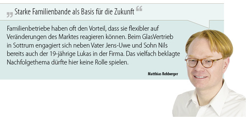 Am Standort Sottrum gibt es zwar noch räumliche Kapazitäten, doch um richtig expandieren zu können, hat der Familienbetrieb erst kürzlich ein 9000 m 2 großes Nachbargrundstück erworben, auf dem schon bald eine weitere Veredlung entstehen soll. Der Standort Buxtehude soll somit für die Fenster- und Fassadenglasfertigung ausgerichtet werden und Sottrum für die Herstellung von Interieurgläsern.