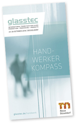 Mit dem neuen Handwerker Kompass, einem handlichen Faltblatt im Taschenformat, finden Besucher schnell und übersichtlich alle Angebote, Sonderschauen und Demoflächen für das glasverarbeitende Handwerk in den Hallen 9, 10, 11 und 12.