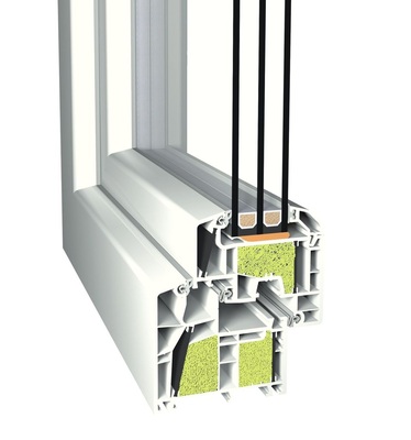 Unter Einsatz der Scheibenverklebung (bonding inside), der Technologie foam inside (Ausschäumen von Profilkammern mit einem PUR-Schaum) sowie dem Ersatz der Stahlverstärkung durch Glasfaserstege (powerdur inside), ist ein metallfreies Kunststofffenster realisiert worden, das seinesgleichen sucht: energeto. Die Lösung erlaubt: