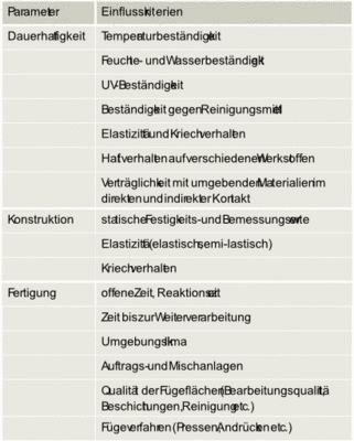 Besonderes Augenmerk für eine dauerhafte Klebefuge ist auf die Kontaktfläche zwischen Klebstoff und den Rahmenmaterialien (Holz, PVC, Aluminium) sowie die Ausführung des Mehrscheiben-Isolierglases zu legen. Die Einflüsse der unterschiedlichen Oberflächen müssen bei allen Rahmenmaterialien beachtet werden. Darüber hinaus ist eine erfolgreiche Nutzung von Klebetechnologien nur möglich, wenn die Zielsetzung unter dem Aspekt der Auswahl von Klebstoff, Konstruktion und Maschinentechnik beachtet wird.