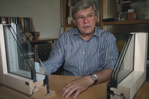 Josef Rauh: Nein, dieses Fenster stellen wir heute nicht mehr her, denn hier existieren Schwachstellen schon bei der Produktion, ich denke hier an die Eckverbindungen und an die Auszugsfestigkeit der Schrauben. Auch muss man an die spätere Generation denken und damit an das sortenreine Recycling. Man braucht heute einfachere Produkte. Wir starteten dann die Entwicklung unseres Verbundfensters TRI-Star-K, mit integrierten Jalousetten und einer schmalen Flügelkonstruktion. Dieses Holz-Alu-Fenster ist mit drei Scheiben ausgestattet und vereint drei Funktionen: Sonnenschutz, Schallschutz, mehr Lichteinfall und ist darüber hinaus eine geklebte Konstruktion.