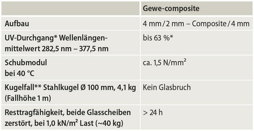 Gerade im klassischen Glasbau ergeben sich durch den neuen Glaswerkstoff interessante Synergieeffekte, die auf seine besonderen Eigenschaften zurückzuführen sind. Durch den Kopplungseffekt des Compositeverbundglases können Überkopfverglasungen um etwa 30Prozent dünner dimensioniert werden. So werden beim Material und bei der Unterkonstruktion enorme Einsparungen erreicht. In Verbindung mit der sehr hohen Resttragfähigkeit sind daher große Spannweiten realisierbar. Zusätzlich erlaubt die neue Technik die Integration von unterschiedlichen Elementen (z.B. Metallwinkeln) in das Compositematerial, was die Verbindung von Glas und Unterkonstruktion enorm vereinfacht. Der Einsatz des Verbundglases eröffnet somit viele neue Möglichkeiten im konstruktiven Glasbau. —