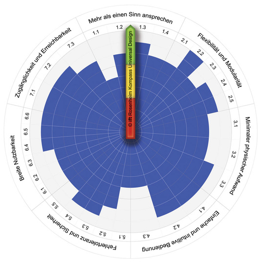 Universal Design will Produkte und Dienstleistungen für möglichst viele Menschen ohne spezielle Anpassungen nutzbar machen. Das gilt nicht nur für Ältere oder Menschen mit Einschränkungen, sondern für jeden. Der Ansatz von UD versteht sich als Verantwortung und kontinuierlichen Prozess, der den Menschen ins Zentrum rückt, neue Service-Systeme initiiert und so auch wirtschaftliches Wachstum fördert [1] . “Universelles Design“ heißt aber nicht, dass alle Menschen unter allen Umständen ein Produkt nutzen können. Denn kein Produkt kann die Bedürfnisse aller Nutzer vollständig erfüllen. Zur konkreten Umsetzung wurden 7 grundlegende Gestaltungsprinzipien formuliert, an denen sich Produkte, Dienstleistungen sowie Fertigungs- und Managementprozesse orientieren sollten [1] (siehe dazu im Beitrag "Mehrwert durch Barrierefreiheit" Seite 67).