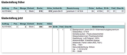 03. Details vom Kundenauftrag, wie z. B. die Fertigungsreihenfolge und in Folge die Sortierung für die Glaslieferung, werden automatisch übertragen sobald diese vom Kunden fixiert sind.